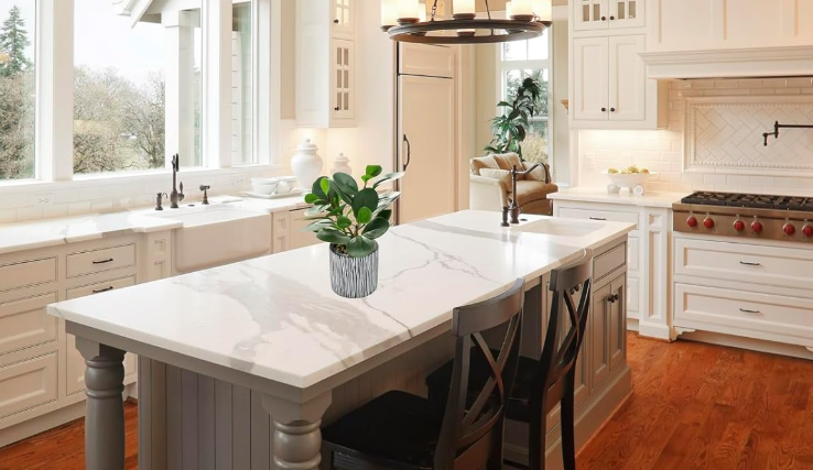 Compact & Decorative Size – Measuring 8″ in height and 4″ wide, this faux fiddle leaf fig tree is ideal for shelves, desks, end tables, and countertops. The heavy-duty black cement pot provides stability, ensuring the artificial plant won’t tip over easily, making it safe for homes with pets or breezy spaces.